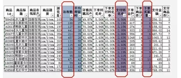 (2)如果产品不是同时上架的,要等几天看访客数是否上升。如果访客数上升,转化率依然比较高(至少和后几款商品差不多),那么这款产品就可以作为主推款。